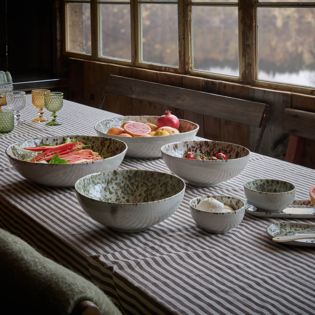 Elevate your everyday dining with this beautifully handcrafted porcelain bowl, featuring a refined off-white base accented by subtle green mélange speckles. Its organic glazing pattern makes each piece one-of-a-kind, while the smooth, glossy finish adds an elegant touch to any table setting.