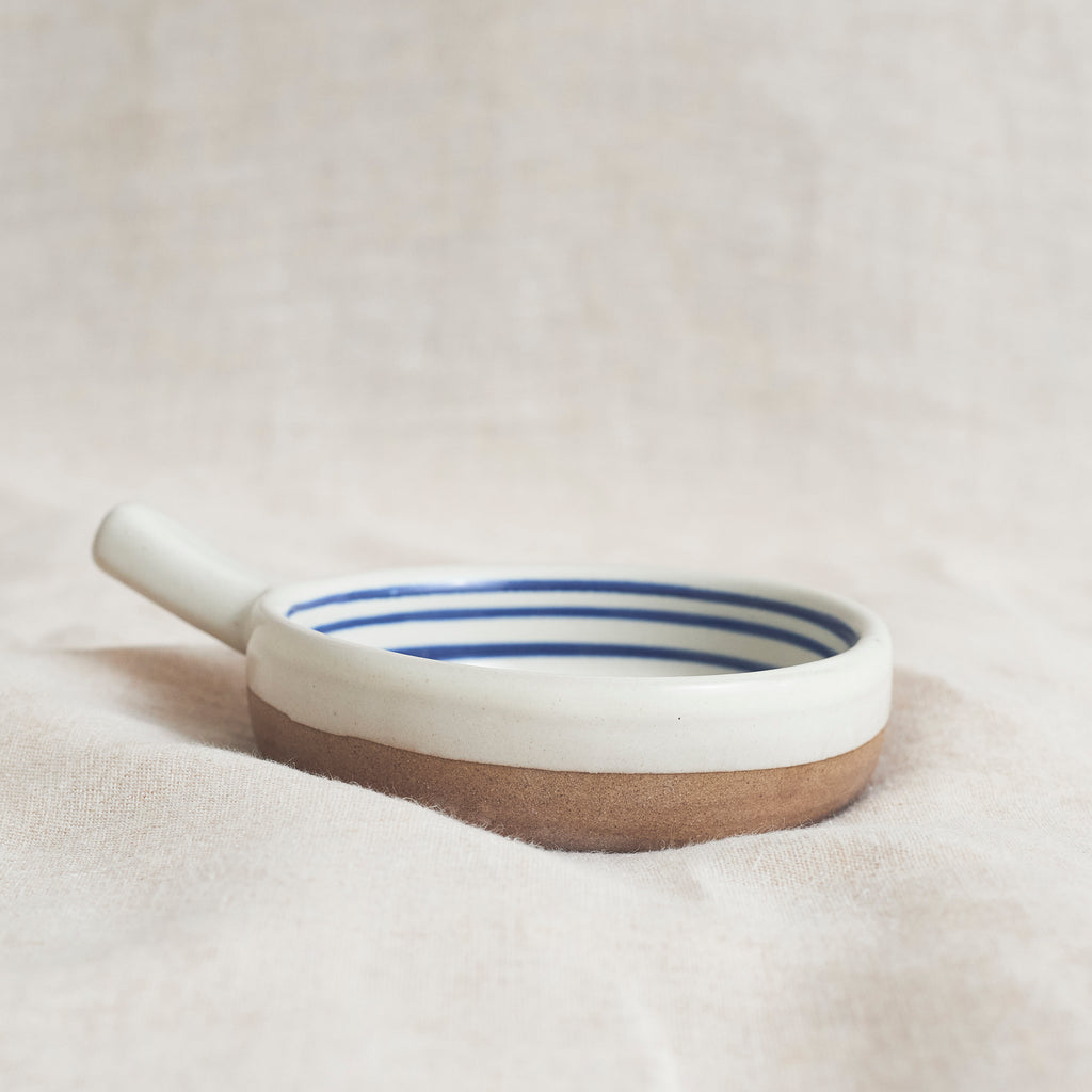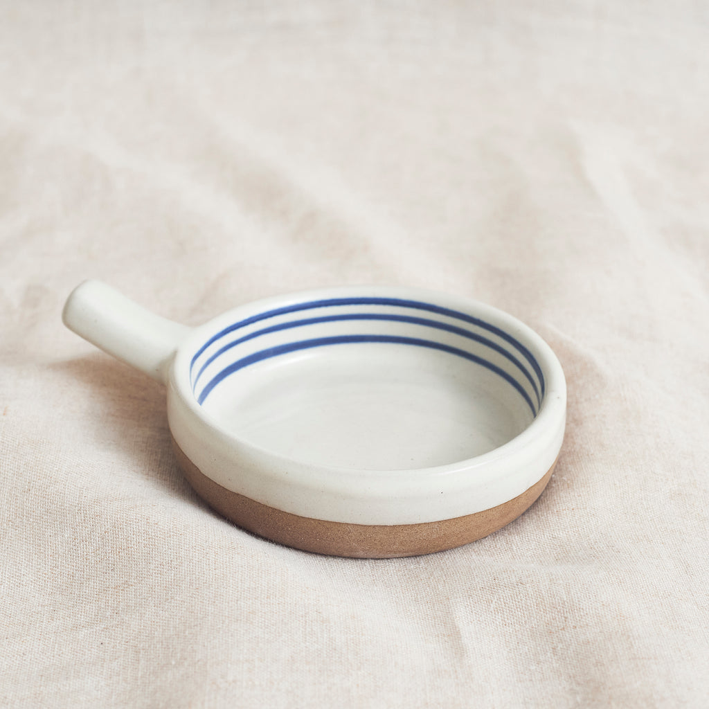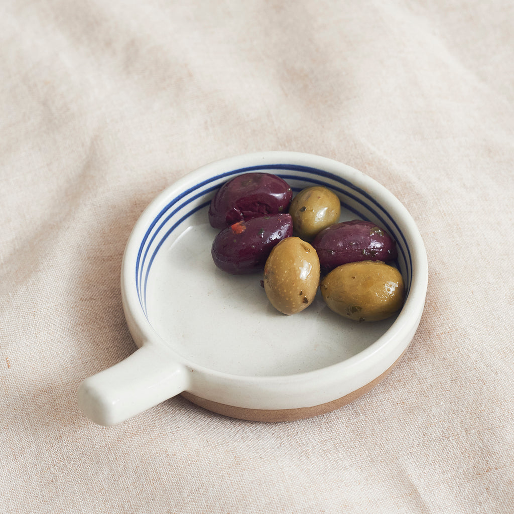 / Botanic Hand-painted Breton Stripe Olive Dish Bowl - Ink blue