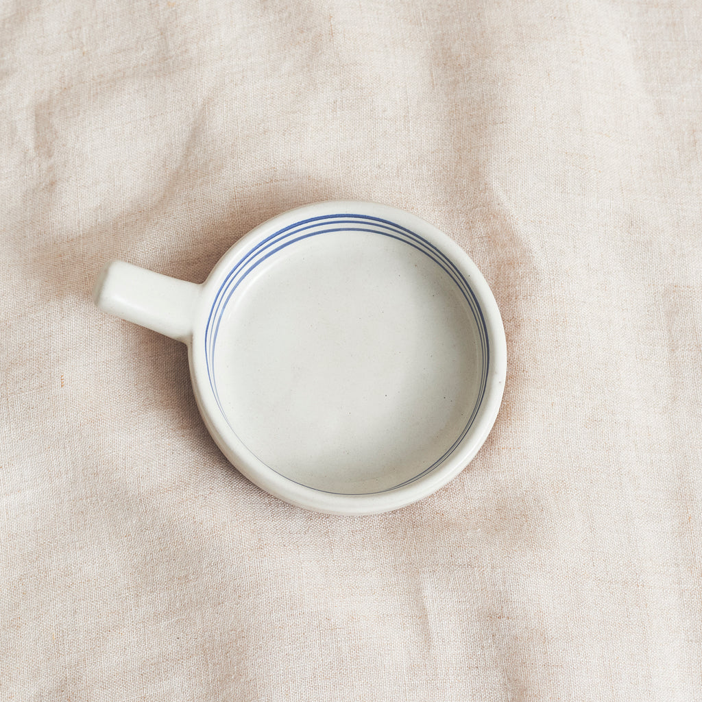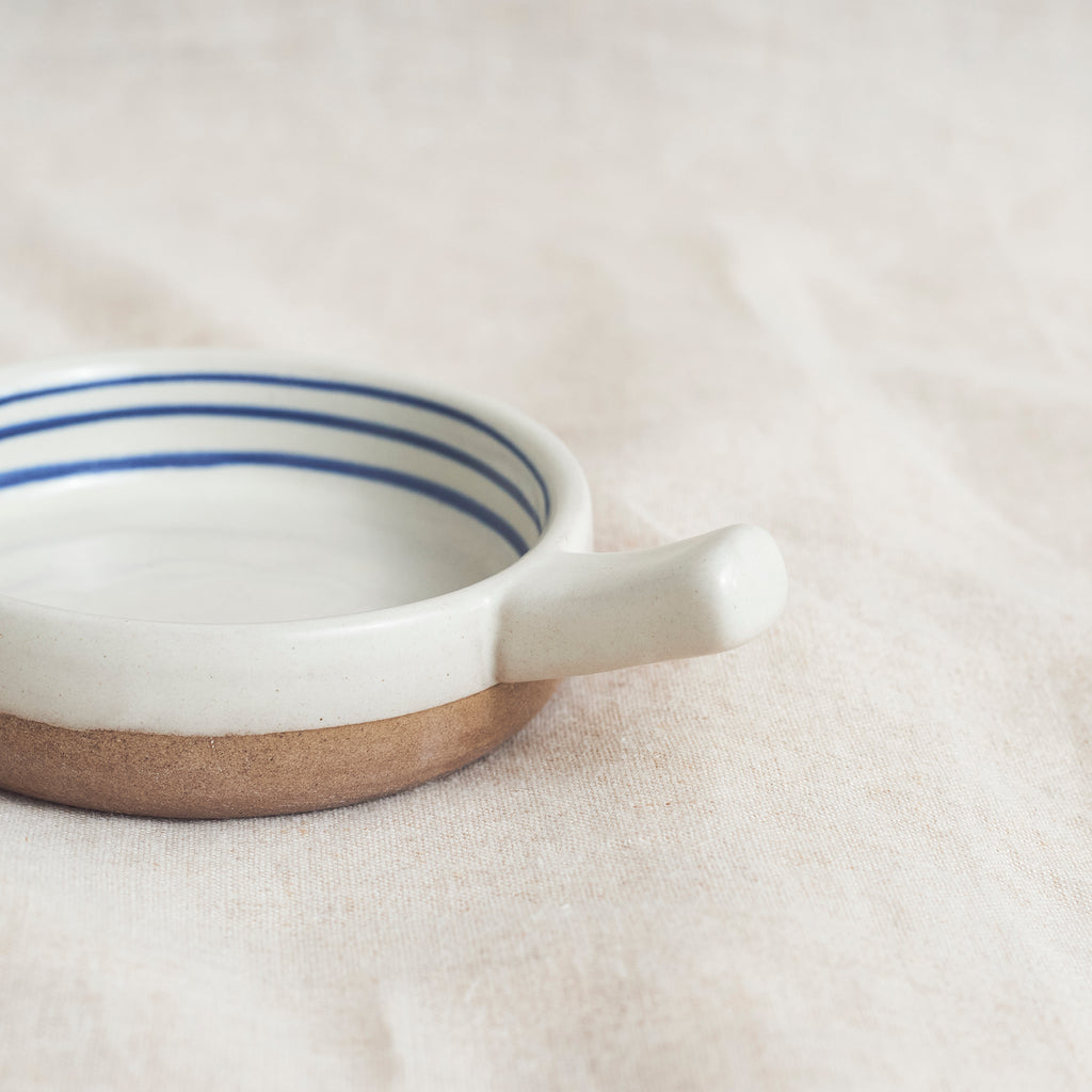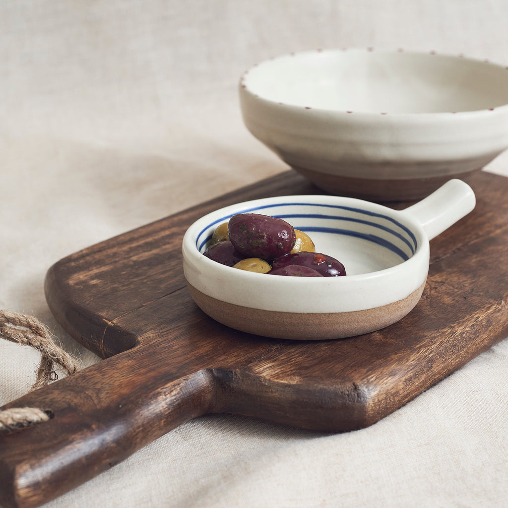 / Botanic Hand-painted Breton Stripe Olive Dish Bowl - Ink blue